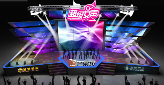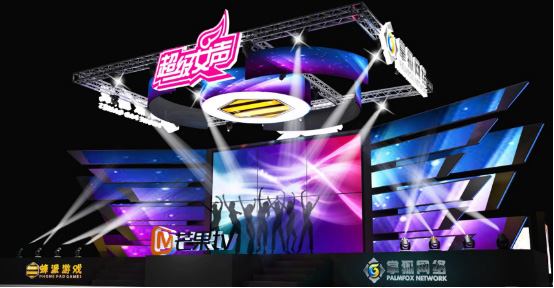 本次展台设计灵感来源于超女“翱翔的双翅”,整体设计采用粉和玫红配合绚丽灯光效果,迎合2016超级女声“青春靓丽、想唱就唱”的特点,表现出一飞冲天、势不可挡的气势!