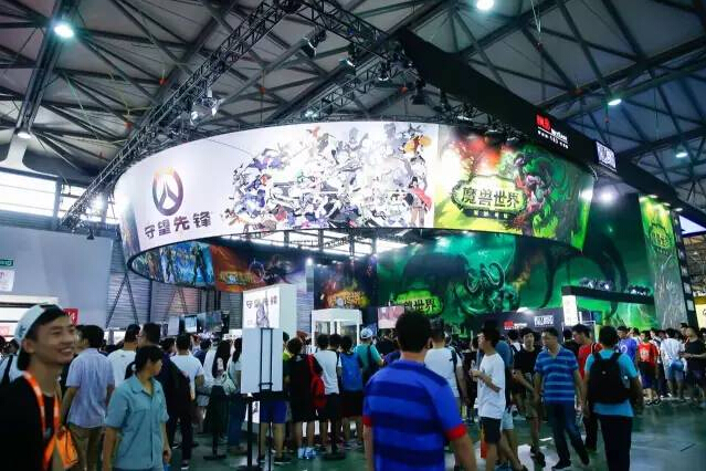 2016年ChinaJoy暴雪展台前水泄不通的玩家