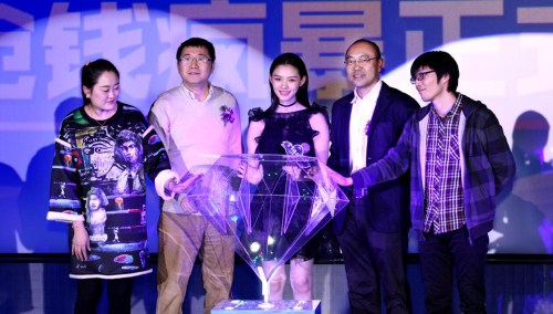 360游戏业务总裁许怡然(右二)与林允共同启动360游戏玩家狂欢节)