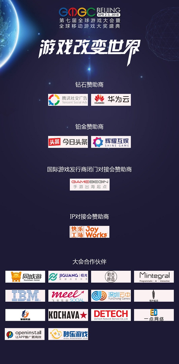 由GMGC主办的第七届全球游戏大会暨全球移动游戏大奖盛典(简称:GMGC北京2018)将于2018年4月2日-3日在中国北京国家会议中心盛大召开,本届大会以“游戏改变世界”为主题,邀请全球50个国家和地区、3000家企业、超过15000人出席,是广大游戏企业把握全球化市场下的中国机会,改变全球游戏市场格局的首选。