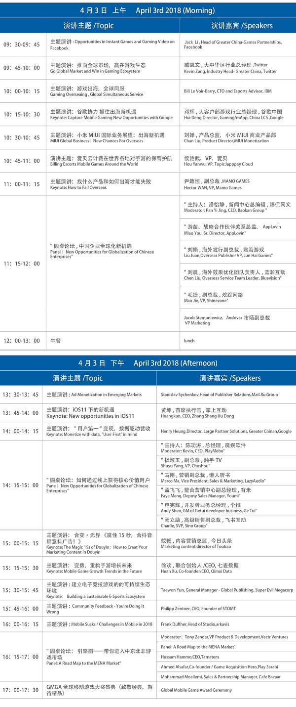 今天是GMGC北京2018大会倒计时10天,主办方正式公布了大会具体议程——