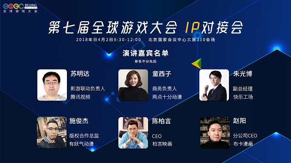 “IP对接会”作为GMGC北京2018的重要商务板块之一,于4月2日上午在北京国家会议中心举办。腾讯视频、有妖气、两点十分、快乐工场、布卡漫画、柏言映画等6家知名IP方,在本次对接会展示了十余款知名IP,为游戏及泛娱乐企业带来了一场IP盛宴!