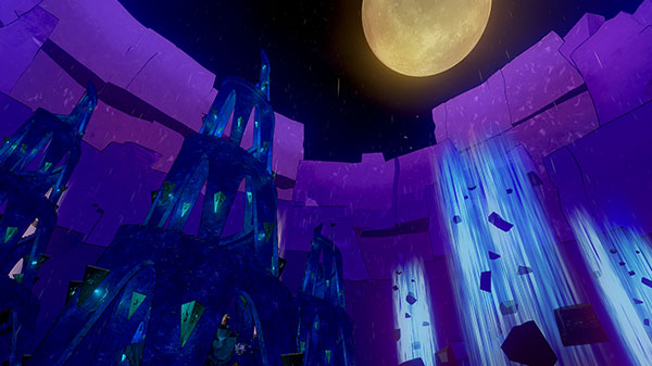 其次是整体的色彩。如果在VR这个全封闭的环境,用比较鲜艳的色调打造整个场景的话会出现一些不自然的晕眩感。尤其是像在《文尼日记》中描绘的一个热爱绘画的儿童幻想世界里,刻意描绘各个色彩的突出感可能会导致一些游戏本身以外的意外发生。比如说我们游戏的第三幕,最初的色调设定是重紫色,因为第三幕讲的幻想世界是充满了忧郁与哀伤的。当我们把这个场景放入到VR世界中,发现一段时间后玩家会对这样的整体色调产生较强的抵触感。所以最终VR内的使用的颜色在饱和度、对比度上会相对低一些,而PC版的色彩会更加贴合《文尼日记》所描绘的幻想世界。