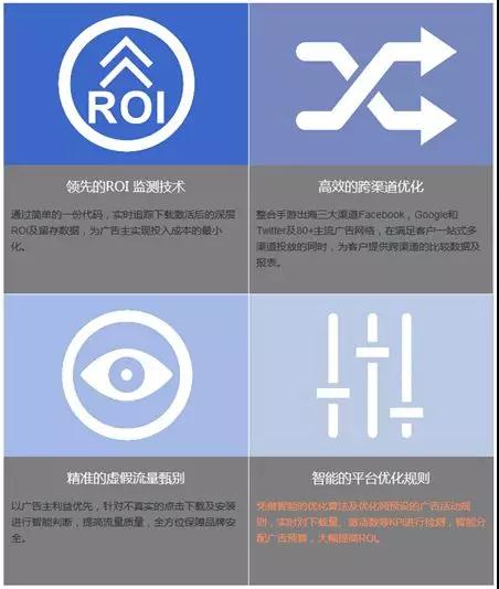 游戏伴随国内移动游戏争相出海的大势所趋,亿动广告传媒(Madhouse Inc.)不断升级旗下App推广平台亿道(PerforMad),优化智能算法,提供客制化解决方案,整合facebook,google及80多家国内外知名广告网络,通过对全广告生存周期的监测,进行渠道内和跨渠道的优化,从而最大化客户的投资回报率(ROI)。