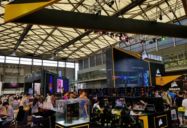 在2017年的ChinaJoy上,美商海盗船带着多款新品强势来袭,并联手全球首屈一指的高端主板、显卡及电竞显示器品牌ROG玩家国度合作,倾力打造多达数十台机器的电竞游戏体验区,吸引了大量观众前去体验。