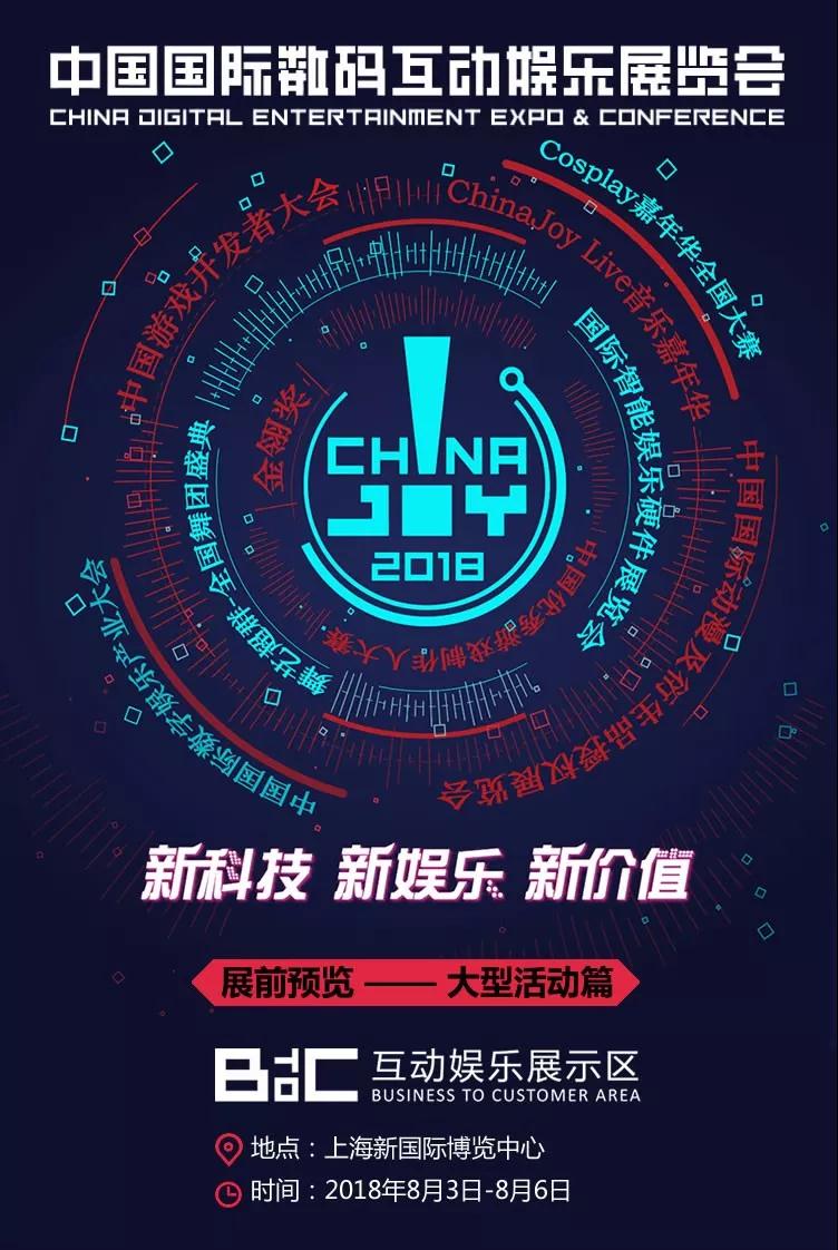 2018年第十六届ChinaJoy展前预览(大型活动篇)正式发布! 以新科技 新娱乐 新价值为主题的2018年第十六届ChinaJoy将于8月3日~8月6日在上海新国际博览中心隆重举行。作为全球数字娱乐领...