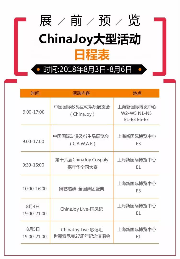 鉴于2018年第十六届ChinaJoy展会开幕在即,ChinaJoy组委会特在此放出ChinaJoy展前预览大型活动篇,帮助大家更详细地了解相关信息与资讯——值此盛事,相信本届ChinaJoy将为大家呈现更多精彩!