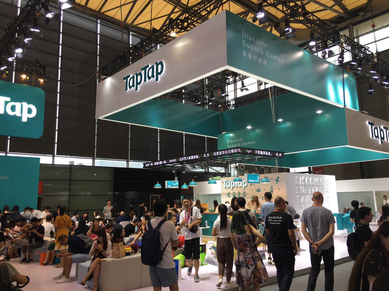 TapTap展台搭建了巨大的展示区与洽谈区,作为国内目前备受关注的高品质手游的手游分享社区,除了提供优质的内容面向普通玩家之外,TapTap还在现场设立了游戏制作人采访、广告投放展示等内容,TapTap正计划将在更多的商业领域发力,而不仅仅只是作为一个玩家分享社区。