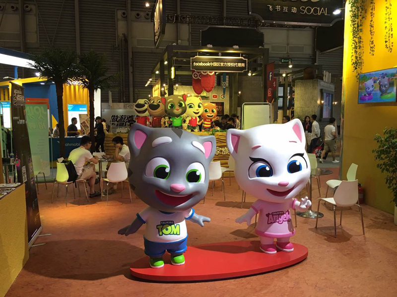 虽说BTOB展区相对专业和商务,但越来越多的厂商开始从自身的产品属性和性格出发来搭建展区并提供现场的商务服务。以金科文化为例,将旗下知名IP《汤姆猫》家族系列产品以周边展示的形式融入到了展台设计中,让人眼前一亮。