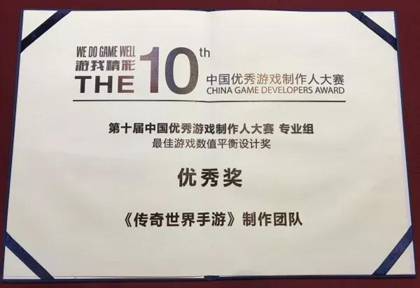 《传奇世界手游》制作团队获CGDA“最佳游戏数值平衡设计奖”