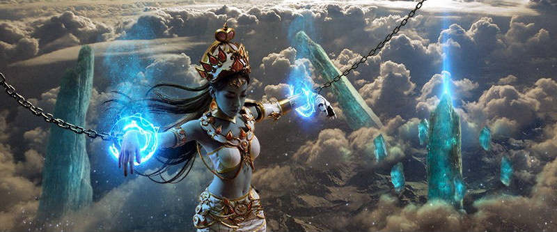 服装道具和妆面没有什么可以挑剔的部分,画面的手法与构思相当薄弱,过于常规的布局和套路化的古风拍摄缺少的不仅仅是新意,而是缺少对这个角色所处环境和形象气质的挖掘。商业摄影套路的布料飘扬在这张图中明显喧宾夺主。
