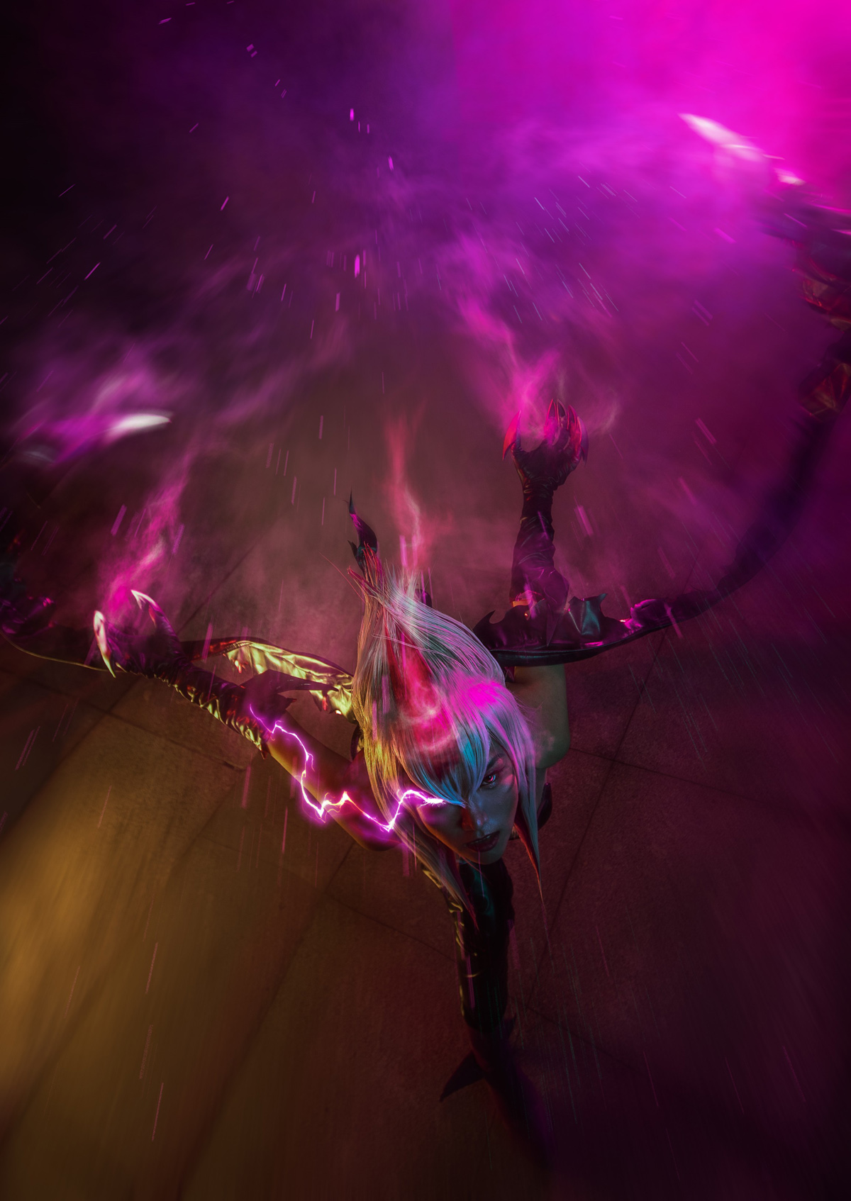 十分用心的准备了多套英雄联盟的服装,无论是场景的选择、道具的搭配还是后期的优化都特别的有美感,还原了每个人物的设定,尤其娜美的Cos很惊艳。而且也没有一味的为了追求形象美而不敢做表情和动作,非常值得表扬。美中不足的是有些人物的拿捏还需要优化,比如伊芙琳只体现了凶狠而没有表现出人物本身最大的特点:妖艳和魅惑。总体来说很好。