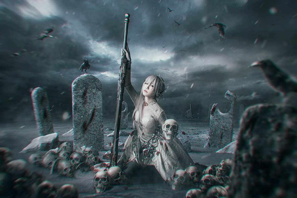 《死亡爱丽丝》白雪姬第一张是作者投稿中最佳作品,其他多套作品之间横向对比可以看出后期师在不同题材方面发挥尚不稳定,合成与非合成作品之间差别很大,而且需要指出,后期工作不仅仅需要把握Coser面部的调整和修正,服装,道具,假发的瑕疵与褶皱如果前期没有处理好,后期应予以修缮。其二是合成特效的方面需要提高画面真实感,要更多注意合成场景和主体人物的关系,层次,明暗等多方面事项,注意让画面更加协调。