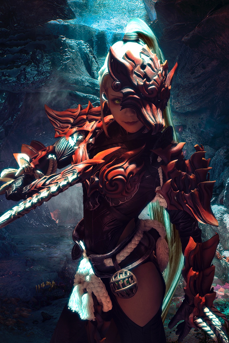 服装道具制作真的非常精细,色泽,材质的还原度都很高。但是对于封面大赛来说,参赛作品只有一张,并且是一个大半身的特写,很难表达主题和表现自己对于角色和游戏场景的诠释。甚至也不足以表现出服装道具的全部精细度和制作质量。总得来说,图太少了。