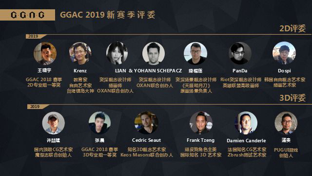 2019赛季,GGAC更加注重赛事评审的权威性与国际视野,共邀请到来自全球6个国家和地区的13位评委大神,并组建了一支由顶级实力派插画师钟风华领衔的专家团,为赛事的评审提供专业视角的同时,扩充了多元开放的文化视野。