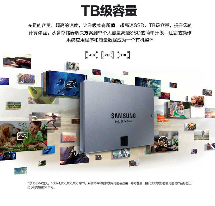 还有三星首款QLC NAND的消费级SATA SSD——860 QVO 2.5英寸 SATA III 固态硬盘。860 QVO采用三星最新的4-bit MLC NAND闪存技术,为消费者提供了海量的存储空间。TB级的容量,凸显出860 QVO是一款品质非凡、价值优化的SSD。
