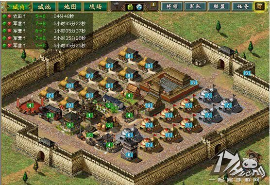 相较于之前提到的三国类网游,《热血三国》更为偏重内政成分,玩家需要在城池中修建官府、书院、军营、校场、市场、作坊等建筑,以生产资源、发展人口。战斗方面,相较于那个九成以上页游还停留在图表式战斗的时代,《热血三国》却已开始尝试对战斗场面的具象化表现,并且在游戏的策略玩法深度上所进行的探索,也为日后更多SLG游戏的开发奠定了基础。