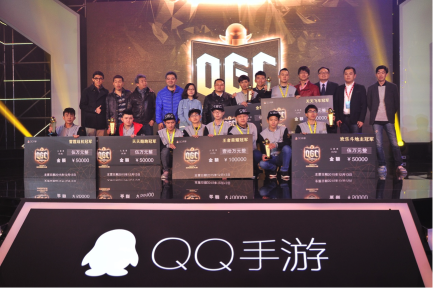 本届QGC总决赛分为两天进行,比赛项目涵盖了MOBA类、FPS类、竞速类以及棋牌类等当下移动电竞领域中的爆款游戏。其中,12月12日决出了四大个人单项冠军,分别为:《天天酷跑》赵根湘、《天天飞车》周俊元、《雷霆战机》黄世琳和《欢乐斗地主》张永杰;一项团体MOBA类项目冠军,《全民超神》不朽之翼战队。12月13日《王者荣耀》影战队获得冠军,《全民突击》单人冠军花落付绍新。