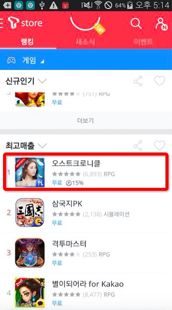 《神魔大陆》上线T-store免费榜NO.1