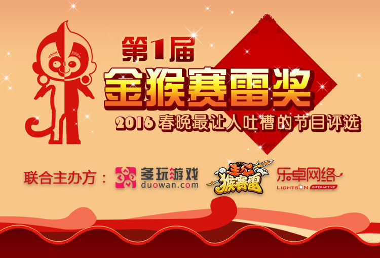“金猴赛雷奖”是乐卓网络和多玩游戏网联合举办的春晚最让人吐槽的节目评选活动,在这个活动开启的当天(2月7日),《主公猴赛雷》正式对外首曝。