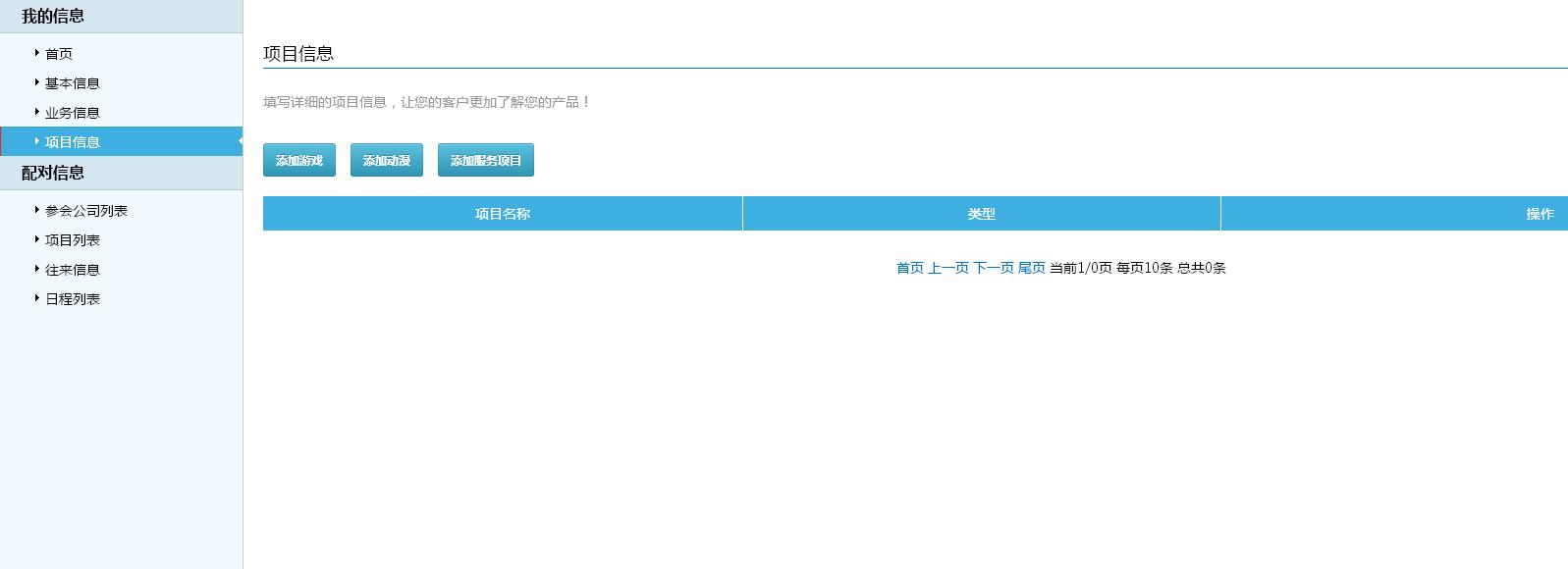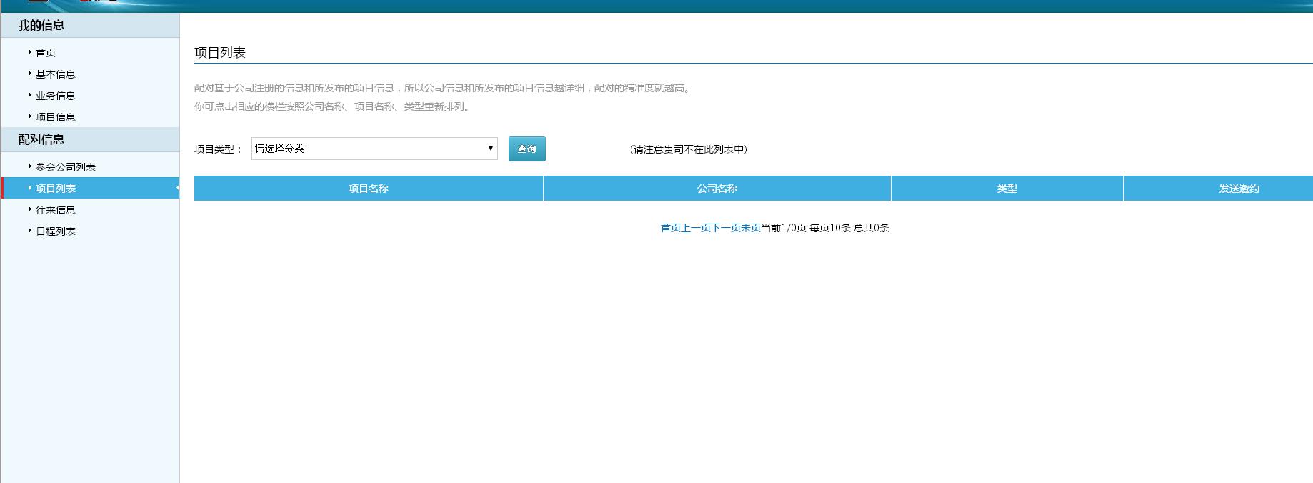 2项目列表——可以点击左侧“项目列表”,浏览与本公司业务匹配的项目的信息,匹配结果取决于填写的本公司资料与项目信息的详细程度。