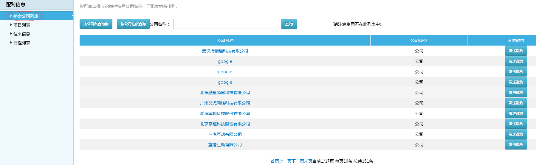 1参会公司列表——可以搜寻想邀约的公司,注(自己搜不到自己的公司)