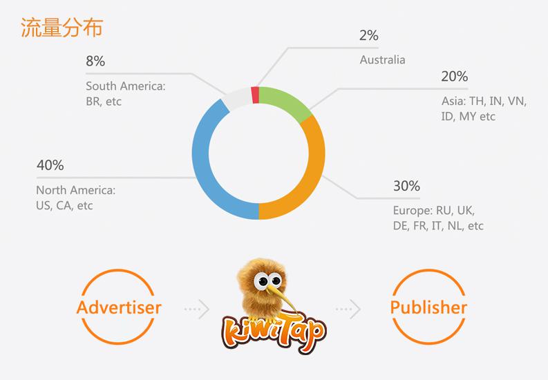 几维广告是面向全球的移动广告平台,已经与超过1000家拥有优质流量的发布商建立了良好的合作关系,覆盖北美、欧洲及亚洲地区,广告到达用户超过2亿,日均展示量超过15亿。几维广告的大数据分析能力帮助移动厂商精准定位潜在目标用户,广告投放效果提高30%。我们的顾问团队具有丰富的投放经验,可以帮助广告主制定投放策略和优化建议。我们同时为移动App、手机游戏等移动媒体提供来自全球的一手和独家offer,帮助发布商快速获取丰厚回报。
