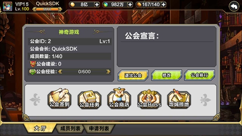 当加入或创建一个公会后,就可以进入查看公会界面了。