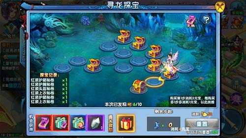 玩家可以点击游戏主界面的每日活动按钮,随后找到寻龙探宝玩法,进入后玩家需要点击格子让角色走到该格子中探索。在此玩家要记住,每探索一个新格子需要消耗1步,而已经探索过的格子再次经过时则不需要消耗步数,每个玩家每天会有10步的免费步数可以供玩家寻宝~