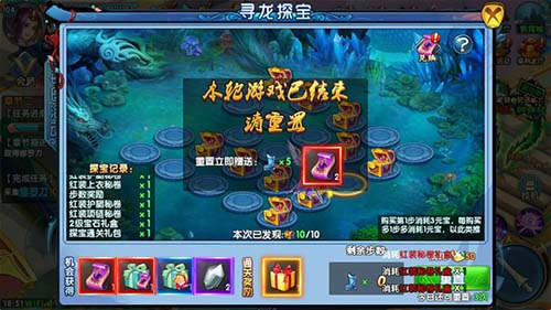 在《紫青双剑》中,寻龙探宝玩家每天可以花费元宝来重置三次,并且每次重置免费赠送5步后会立即获得2张红装图谱兑换券,在上一轮游戏中剩余的不熟还可以在本轮继续使用。同时大家要注意的是,寻龙探宝玩法会在每天的0点进行重置,而所有奖励物品也都会直接发到玩家背包中,为了保证背包满了后还可以收到奖励,系统将在背包满后把奖励发送到玩家的邮件中,简直不要太贴心~~ 同时在寻龙勘宝探宝中获得的兑换券还可以1:1在兑换页面中兑换任意部位的装备图纸,所以大家不要在犹豫了!快加入《紫青双剑》来一起寻宝把~!