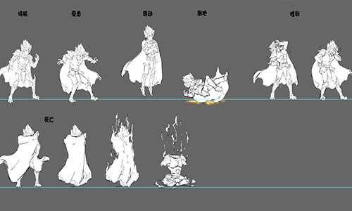这是游戏中鸟不拉屎的技能设定分解图,根据《十冷》中角色战斗动作,是经过精心还原,最后加入动画形成连贯的技能效果。