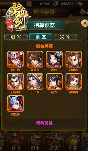 明朝末年,动荡不安,内忧外患的局势下,衍生出不少阵容,揭竿而起的义军,保家护国的明军,以及武林中的正义之士自发组织的武林豪杰。他们来自不同的门派,但他们目标一致,助你横扫敌方一统江湖!《碧血剑》手游三大阵容,百位原著英雄,任意组合,搭配最强阵容消灭仇敌,成就最强战队。