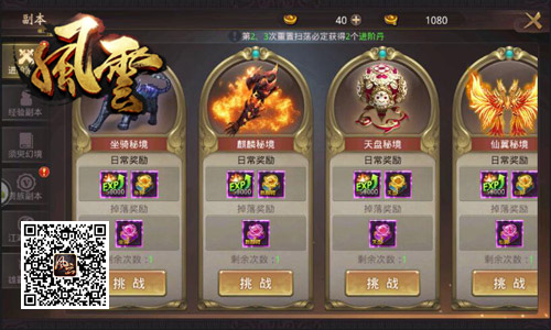 在由马荣成知名漫画“风云”正版授权改编,冰河游戏2017年首款武侠MMORPG《风云志》(安卓版)中,玩家可通过天盘秘境获取海量天盘进阶丹与经验奖励哦!想知道天盘秘境怎么玩吗?话不多说,快跟着小编去游戏里看看吧!