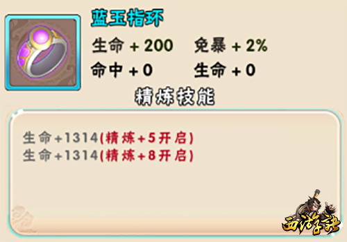②精炼技能:生命+1314(精炼+5开启)、生命+1314(精炼+8开启)