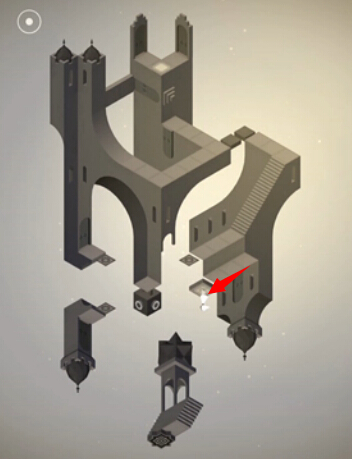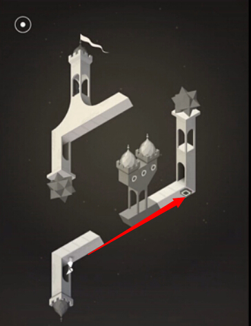 4、进入新场景,利用左边的转盘机关。让艾达不停的轮回往前走,如图所示。进入新的门,往前走,触动新的机关。到达下一个场景。