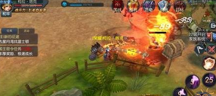 那么如何进入自动战斗呢?很简单,不管在野外还是在副本,屏幕右侧中部始终显示着2个圆形图标,旗帜图标代表着“组队”,两把剑图标代表着“自动战斗”。