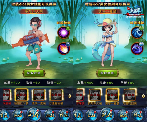 夏日即将溜走,但这丝毫不影响我们欣赏泳池比基尼的兴趣。即将上线的《新大主宰》全新资料片将上线多款风格各异的套装,其中最为抢眼的几套让人眼前一亮。一套夏日清凉型的泳池套和一套阴森森的僵尸套装,两款新套装让女主的颜值持续飙升,而男主的两套对比差距简直太大,两款套装附加的属性几乎一致,但所带的技能各有不同,整体来说效果非常不错,值得考虑入手。据说还预送天蚕土豆的同款套装,作为大神的御用小马褂,造型肯定比这两套还要炫酷,目前还没有相关资料爆出,先期待一下吧。