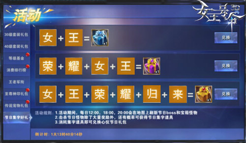 女王荣耀归来,老玩家回归领千钻豪礼,钻石金币福利每天登录就送……新版恩上线,只有新内容玩法当然还不够!《女王号令》本次新版本上线,还推出了丰富的更新福利活动,海量的金币钻石,还有神兵碎片、高级宝石以及传说宠物蛋等稀有道具,任性送送送!赶紧来塞亚大陆一战吧,勇士们!
