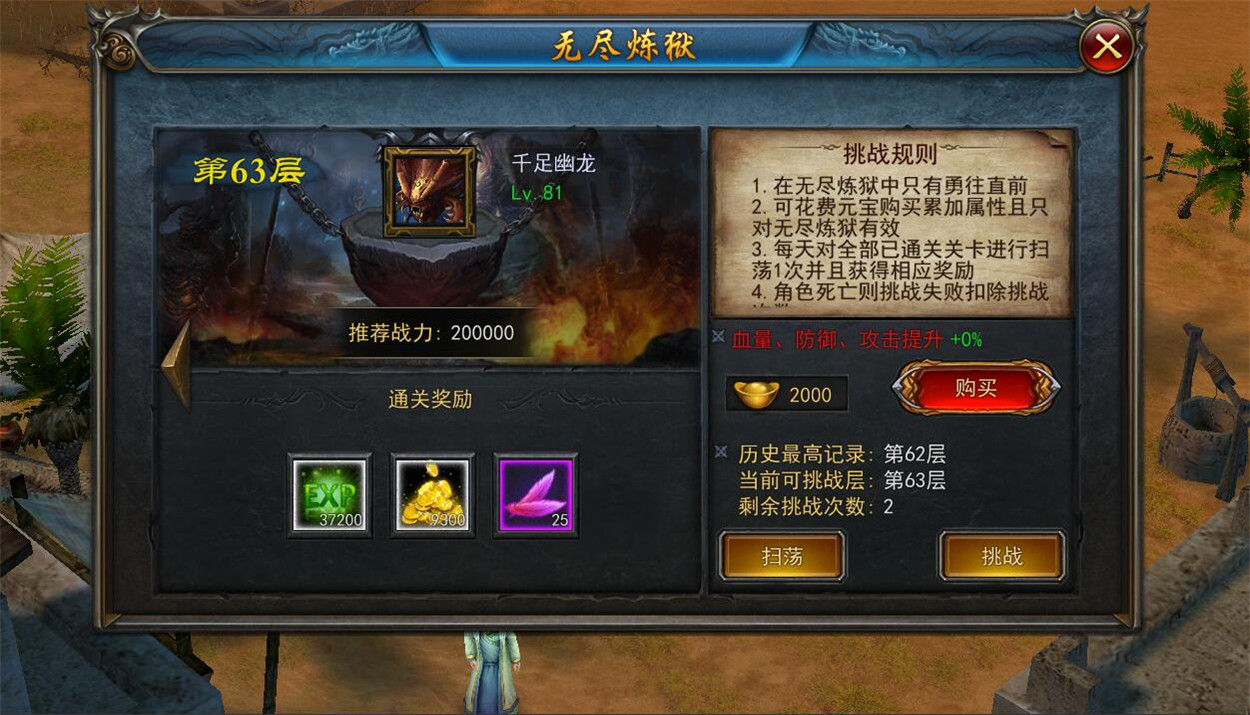 炼狱63层绝对是所有挑战者的噩梦,想要冲过去简直如登天一样难。不过,不用灰心,只需要等实力提升一些,再加上一些小技巧你也是有很大几率成功闯关的。