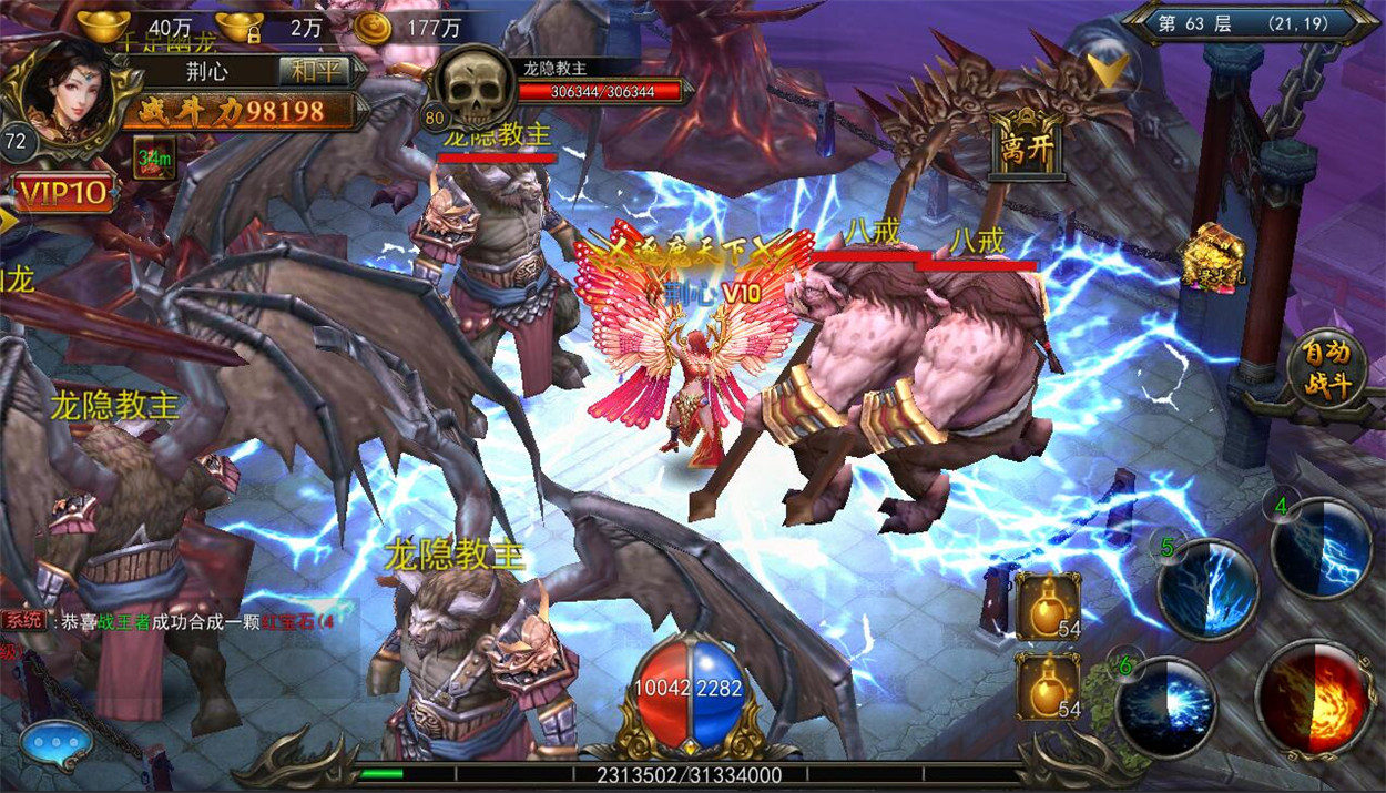 进入之前,宝石镶嵌,装备强化要向血量和防御重点提升,各种血药,防御水也不能少,重点是要购买炼狱属性,最高可增加25%的防御,血量和攻击,这一点可是相当关键;进入战斗后,不要乱跑,远处的三条虫不会打你,只要抗住猪和牛的攻击,你就已经胜了一半了,剩下的只要花时间一个个磨死就成了,先拿较弱的三只猪开刀。
