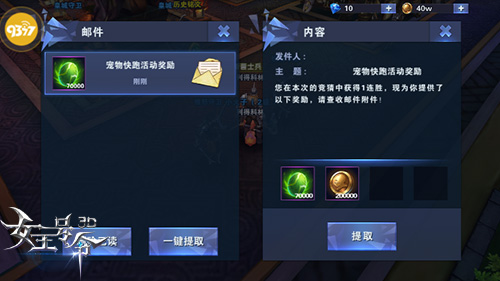 《女王号令》新版本开放的“宠物快跑”活动玩法,除了能够让勇士强者们获得欢乐、紧张、激动等丰富的情绪体验之外,还有诱人的奖励!在活动结束之后,根据自己在赛事当中的连胜场数,勇士强者们能够获得海量经验、金币以及普通宠物蛋、稀有宠物蛋等收益!