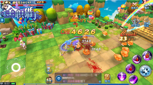 《全职猎手》中的【金币乐园】,是休闲娱乐的趣味副本。玩家们从一道美丽的棒棒糖彩虹门中进入,在蓝天白云绿树青草间狂刷蘑菇怪。刷怪区域分为3个等级:1倍金币、3倍金币和50倍金币,怪物的大小和难度也有相应提升。