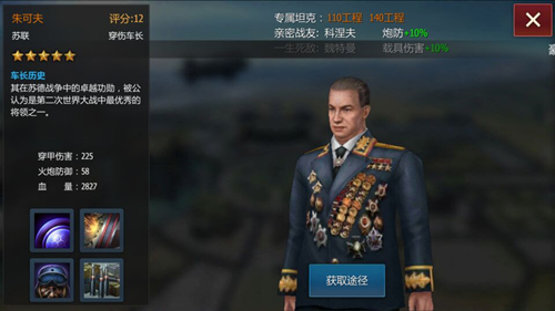 《钢铁雄狮》中,每个坦克搭配其专属车长不仅能发挥车长主动技能,使得战斗力飙升,同时还能触发坦克自身与车长的专属羁绊,大幅提升坦克自身的生命值。110工程的专属车长是二战最优秀的将领朱可夫,不论在东部战场还是苏德战争,他发挥了极其高超的统帅才能,不负元帅之名!朱可夫的主动释放技能为“铁幕科技”,可激活短时间内的无敌效果,手动释放能还可精准躲避敌方的短期超高爆发,达到出奇制胜的效果。