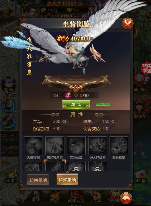 《武神传说》的坐骑拥有非常华丽的外表,有吟啸九天的神龙、亦有威武霸气的避水金睛兽。目前武神里只有十个品阶的坐骑,品阶越高的坐骑附加的属性越多,外观越霸气。