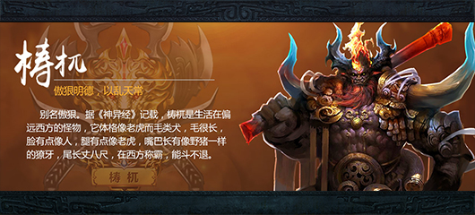 梼杌:“西方荒中有兽焉,其状如虎而大,毛长两尺,人面虎足,口牙,尾长一丈八尺,扰乱荒中,名梼杌。”这是对凶兽梼杌的形容。《左传·文公十八年》中记载“不可教训,不知话言,告之则顽,舍之则嚚,傲狠明德,以乱天常”,傲狠指梼杌。意为傲狠油盐不进,好赖话不听,桀骜难驯,每次出世都有违天地之常理。梼杌凶狠难驯,勇士可以在世界首领中找到梼杌,并且消灭掉它以平天地常理。