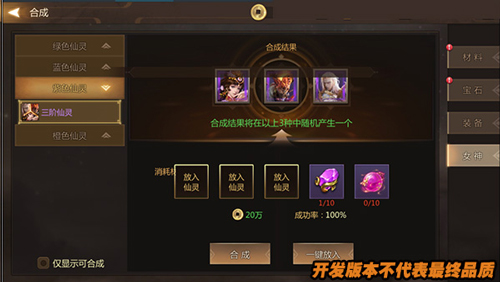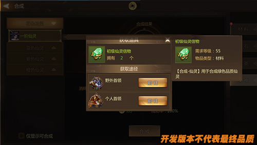我们也可以用低阶的仙灵合成更高阶的仙灵,合成高阶仙灵需要一些特殊材料,同样可以从日常活动中来获取特殊材料。