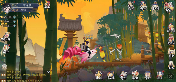 在玩法上,《长安幻世绘》包含地图探索与战斗两大部分,地图中拥有种类丰富的收集要素以及玩法各异的小游戏,减轻了玩家在探索中的重复感,可以说在同类手游中独具特色。在最新试玩版本中,游戏的背景音乐有了大幅度的提升,蜀山城镇地图中悠扬的音乐,秘境探索中静谧的音乐,洞穴暗窟中阴冷寒森的的音乐,很好地渲染了气氛。探索地图中可以见到各种中国古式建筑,加之高悬的彩灯、惊起的飞鸟等元素的点缀,也可称得上是一步一景了,玩家会有“如在画中游”的体验。