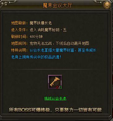 《灭神》全新开放的第五大陆上,自然也少不了全新的BOSS。这里的魔界会议大厅中,存在着强大的魔界议会长老铁鹰。他掌握着大量魔界的财富,传闻长老身上拥有传说中的极品五品武魂。当然,作为魔界的议会长老,推倒第五大陆BOSS的难度自然不会小。宠物无法出战的要求,将会让勇士们的战斗更加艰苦,但战斗胜利后的奖励也足够惊喜。五品极品武魂将会给勇士们带来“圣体”这一无敌BUFF——在PVP战斗中,将会有几率触发5秒的无敌状态。五品极品武魂的掉落,圣体BUFF的诱惑,相信斩杀魔界长老已经成为了每一位《灭神》勇士的最新梦想。