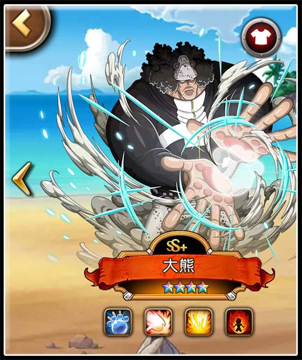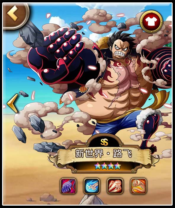 除了斗志高昂状态之外,新世界·路飞最令人称道的还要数其惊人的爆发力。作为官方认定的“T装DPS”人物,其本来的设计思路也很明显是偏输出向。但是,相信绝大多数玩家都没料到,顶配新世界·路飞的输出会如此强势,如此蛮不讲理。甚至不需要释放大招,借助于斗志高昂状态下的技能强化,以及破甲效果,新世界·路飞的所有技能都拥有极强的杀伤力。有时甚至能在开场几秒钟之内一击秒杀突破黑胡子和突破大熊之类的阵容核心,其恐怖的杀伤力可见一斑。