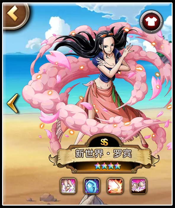 之后,玩家又发现使用新世界·路飞搭档新世界·罗宾可以有效对抗突破黑胡子的暗穴道沉默控制,大大提升花伞的成功率。在此基础上,逐渐衍生出了以新世界·罗宾搭档保护突破多弗拉门戈的套路,而后者也确实因此声名大噪。再后来,大家又发现高配版的新世界·罗宾自身就可以输出,且量级惊人,完全没有依赖他人的必要。随后,更多输出战术被开发出来。甚至在同样的组合中,新世界·罗宾与突破多弗拉门戈的战术作用完全互换,打出无上威名的,变成了新世界·罗宾。